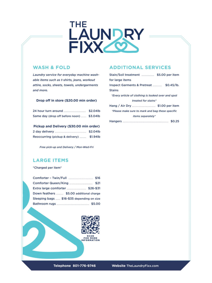 Drop off your laundry at our laundromat and we will professionally wash, dry and fold everything for you. If you want your clothes back the same day, they must be dropped off before noon.
